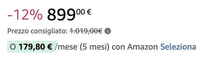 Amazon permette di acquistare entrambi i computer in 5 comode rate senza finanziamento o costi aggiuntivi. Semplicemente il totale viene diviso in 5 parti uguali: la prima si paga subito e le altre nei 4 mesi a seguire. Non si avvierà nessun finanziamento e non sono previsti costi aggiuntivi per la dilatazione delle rate. Per usufruire di questa modalità di pagamento basta premere la scritta “seleziona” direttamente nella pagina del prodotto: