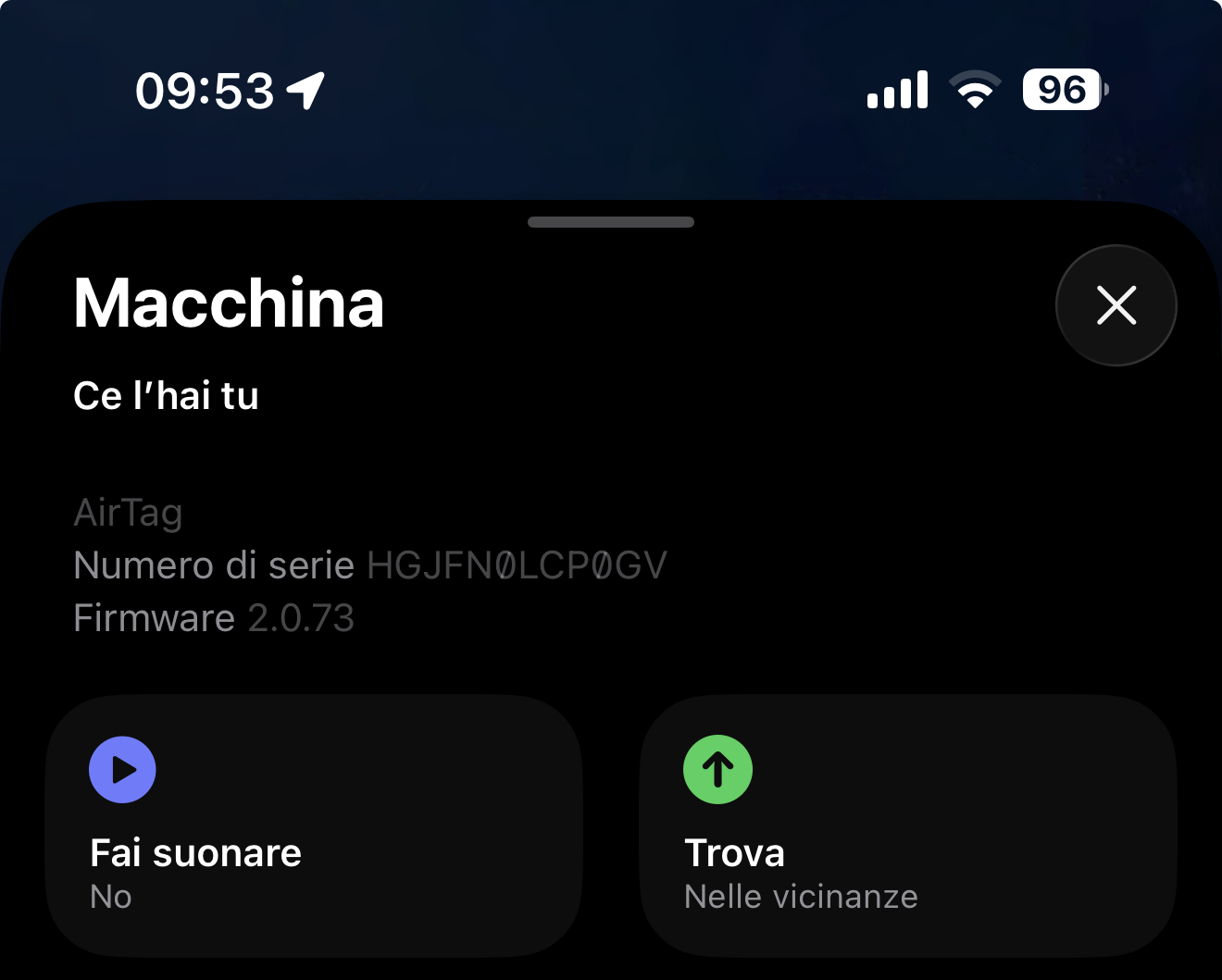Per conoscere la versione attualmente installata, è necessario aprire l’applicazione Dov’è, selezionare la scheda “Oggetti” e toccare il nome dell’AirTag desiderato. Premendo nuovamente sul nome del dispositivo, apparirà il dettaglio del firmware.