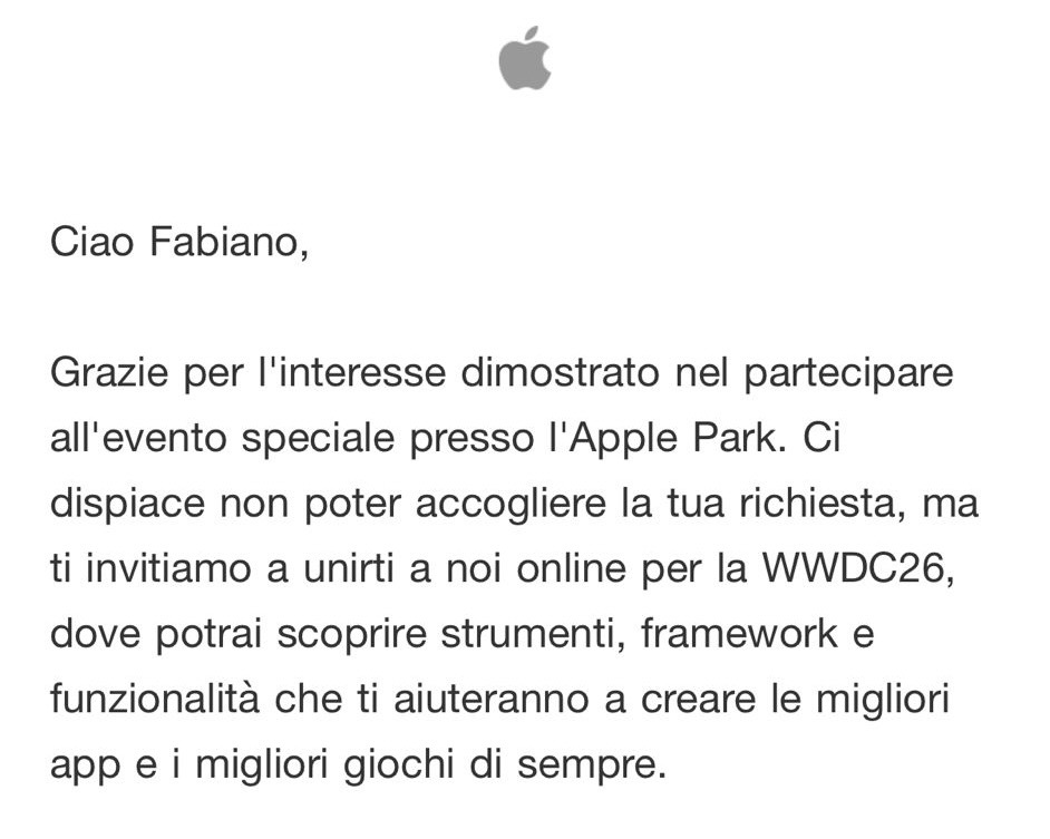 Apple ha ufficialmente iniziato a comunicare l’esito della lotteria per la partecipazione in presenza alla WWDC 2026 (Worldwide Developers Conference).