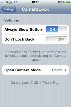 Questa mattina vi avevamo raccontato della nuova opera del nostro Filippo Bigarella, CameraLock: il Tweak per l’accesso diretto alla Fotocamera dalla LockScreen per iOS 4. Da qualche minuto è disponibile un nuovo aggiornamento attraverso il quale è stata introdotta l’opzione per nascondere la scritta dello slider oltre ad un generale miglioramento della sicurezza.