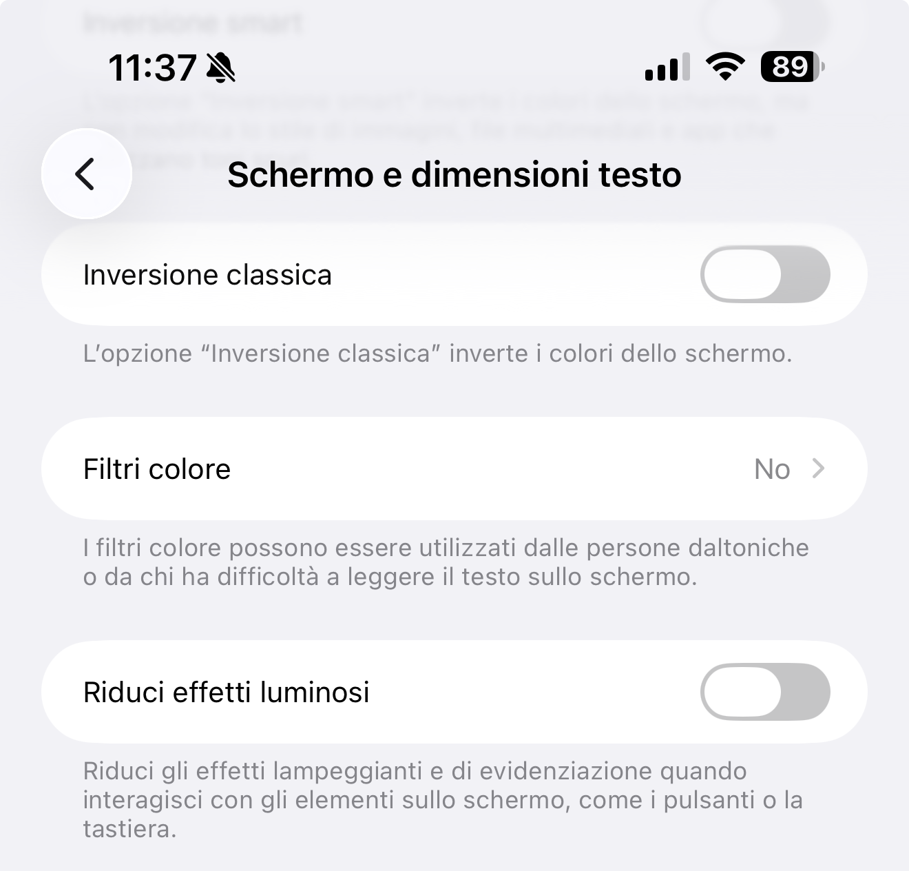 La prima grande novità è l’opzione denominata “Riduci effetti luminosi”, che permette di attenuare i bagliori e i riflessi tipici degli elementi UI di nuova generazione. Secondo la descrizione ufficiale fornita da Apple: