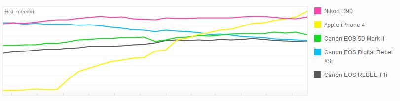 Ecco le fotocamere presenti, oltre all’iPhone 4, nelle prime 5 posizioni: