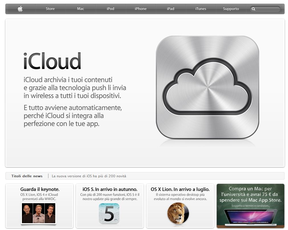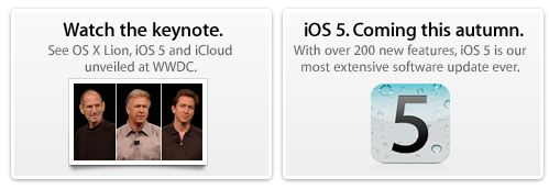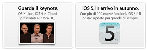 Apple non è solita a certe sviste ma questa volta i grafici hanno commesso un errore. Sul sito ufficiale italiano infatti, è possibile osservare in basso a sinistra un piccolo errore riguadante l’ultimo WWDC. Risultano essere stati presentati Lion, iCloud ed iOS 4 anzicè il 5.
