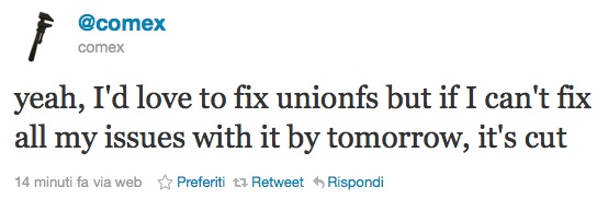 Qualche giorno fa abbiamo scritto un lungo articolo in cui Comex rilasciava importanti dichiarazioni sul Jailbreak ed il prossimo Tool per sbloccare l’iPad 2 ed altri dispositivi. In particolare l’hacker stava lavorando sull’ “unionfs“, un sistema per velocizzare il Jailbreak da implementare nella prossima versione del suo programma. Pochi minuti fa è stato pubblicato un nuovo tweet che ci aggiorna sui progressi.