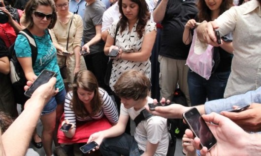 L’evento, composto da una quarantina di suonatori, era un flash mob organizzato in occasione del Make Music New York, festival musicale che si svolge da 5 anni il 21 giugno, in occasione del solstizio d’estate. Capeggiati da Aaron Siegel, compositore di musica ambient, i partecipanti – tutti possessori di un iPhone 4 – si sono ritrovati alle 12:45 di martedì davanti a Wall Street e, sulle direttive del maestro hanno attivato un’applicazione realizzata apposta per l’evento, chiamata Group.
