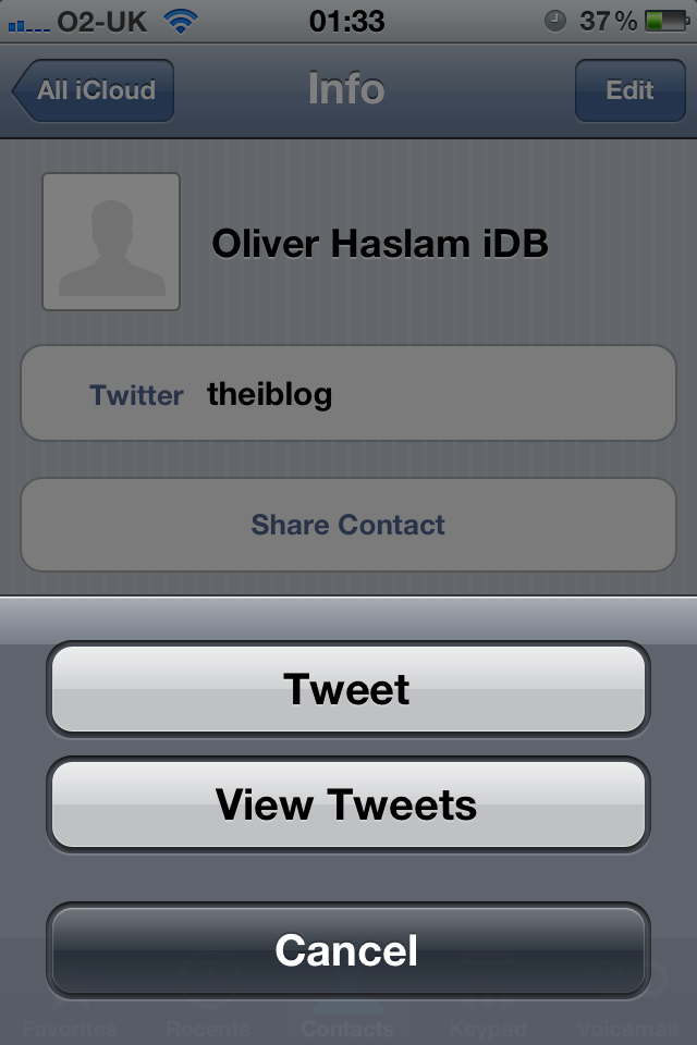 Inoltre, sempre tappando sul nome dell’account Twitter, troviamo l’opzione “View Tweets” che ci peremette di visualizzare la Timeline di quel contatto.