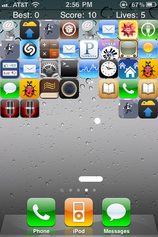 Come molti di voi avranno capitò, questo tweak permette di gioca al classico Block Breaker, unica variante è che i mattoncini da colpiri saranno le icone delle nostre app installate.