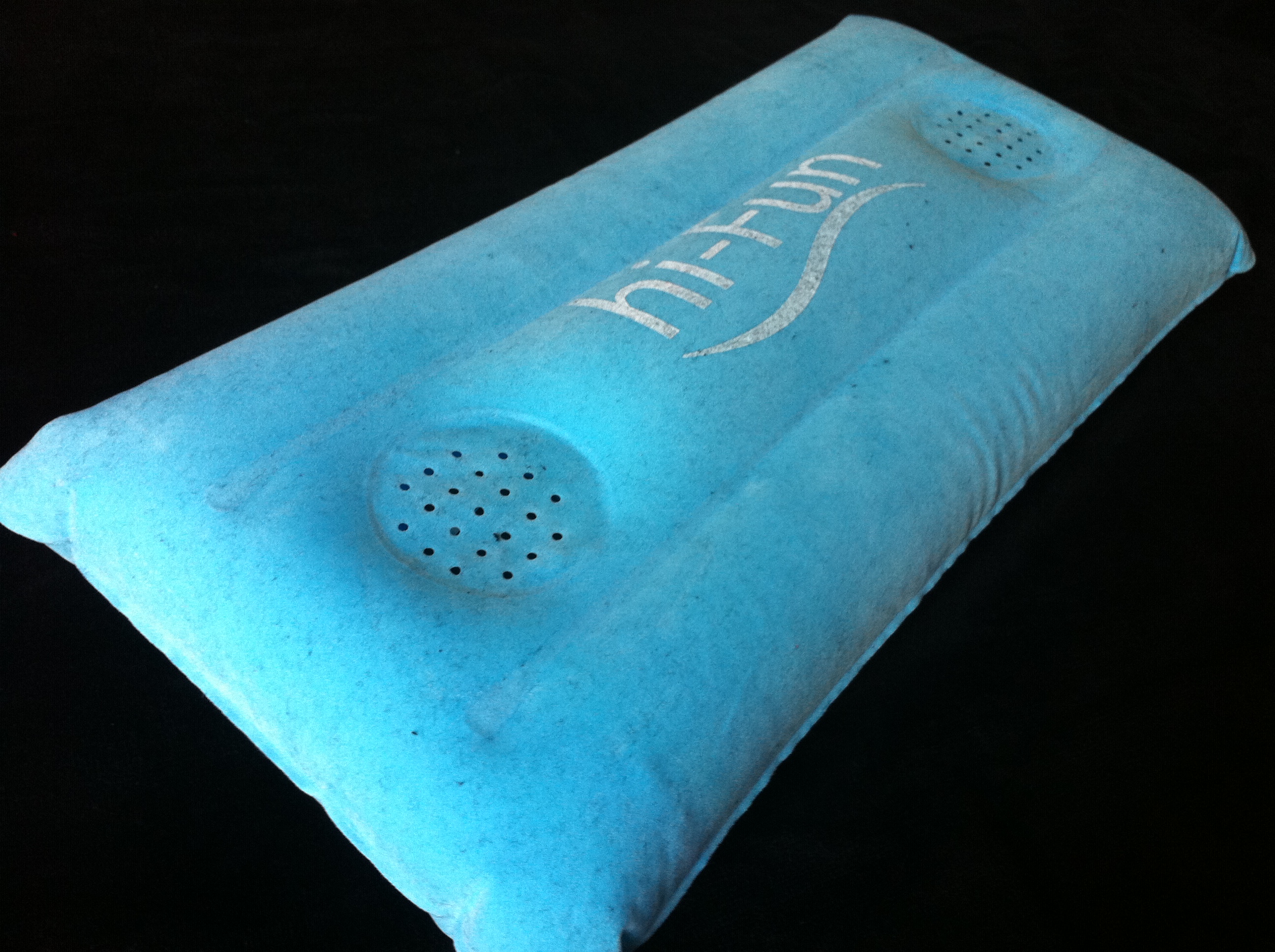 Grazie ai potenti speaker integrati nel cuscino gonfiabile (estraibile per permetterne il lavaggio) e alla capiente batteria al litio integrata, ricaricabile tramite porta USB disponibile su uno dei due cavi, hi-Sun riprodurrà la vostra musica per ore.