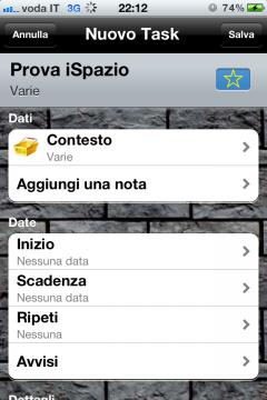 Per quanto riguarda le notifiche e quindi gli allarmi associabili ad un task, gli allarmi sono virtualmente illimitati, e l’applicazione dispone non solo delle notifiche push remote, ma anche di quelle locali a partire da questa versione. Le notifiche locali sono completamente gratuite, tuttavia sono limitate a 64. La limitazione e’ una caratteristica intrinsica di iOS 4.x, per cui ogni applicazione ha a disposizione solo 64 notifiche locali. Quando l’utente schedula 64 allarmi tramite notifiche locali, per poterne schedulare un altro deve cancellare un allarme impostato in precedenza oppure attendere che arrivi almeno una notifica in modo da avere a disposizione una notifica locale.
