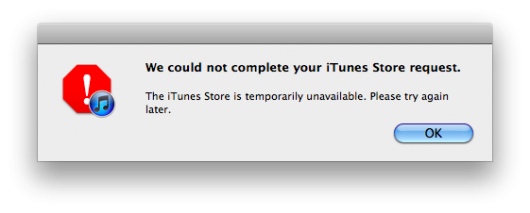Da pochi minuti circolano in rete una serie di segnalazioni secondo cui gli iTunes Store e i Mac App Store stiano funzionando a singhiozzo per alcuni utenti che hanno ricevuto il seguente messaggio d’errore cercando di effettuare l’accesso a entrambe le piattaforme.