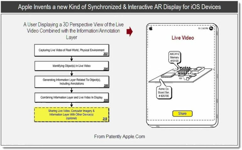 Il brevetto prevede una rivoluzione rispetto alla visione iniziale di Apple per la realtà aumentata. Jobs infatti ne prevede un utilizzo tramite applicazioni nel settore business in grado di far interagire i dipendenti o clienti di una stessa azienda in tempo reale in qualsiasi luogo essi si trovino attraverso una realtà aumentata interattiva con la possibilità di scambiarsi, ad esempio appunti e annotazioni impiegando anche tecniche di riconoscimento degli oggetti, il tutto, ovviamente in maniera tridimensionale.