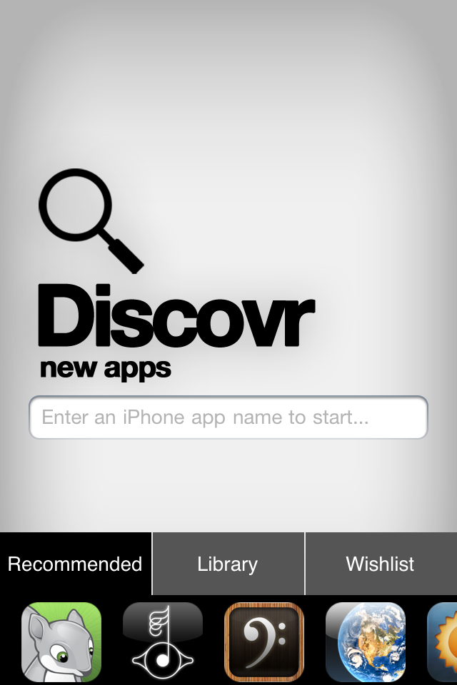 All’avvio dell’applicazione abbiamo diverse scelte per iniziare la nostra ricerca. Innanzitutto possiamo decidere se effettuare una ricerca partendo da un app che già conosciamo e digitando quindi il nome dell’app nel campo di ricerca. Nella parte bassa dello schermo invece sono presenti tre sezioni che possono aiutarci nella scelta: le app raccomandate da Discovr Apps, la “Library” dove troviamo tutte le applicazioni installate sul nostro dispositivo e la “Wishlist” dove possiamo aggiungere quelle che desideriamo scaricare e che possiamo usare come promemoria.
