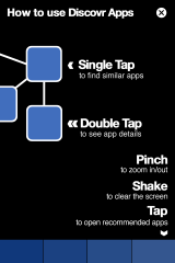 Discovr Apps è un’applicazione che vi permette di scoprire nuove applicazioni da installare sui vostri dispositivi, suggerite in base alle applicazioni che già conoscete. Attraverso l’interfaccia grafica, che già abbiamo visto per Discovr Music, partendo da un’applicazione puoi visulizzare quelle collegate o affini, per funzioni proproste o caratteristiche similari.[screen]440101665[/screen]