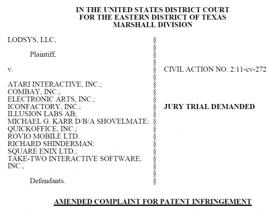 Lodsys, la compagnia che ultimamente sta creando confusione e panico tra gli sviluppatori di applicazioni che offrono acquisti in-app, prosegue senza sosta nella propria campagna di querele: stando a quanto riportato da FOSS Patents infatti vi sarebbe una nuova disposta legale legata a 5 altri produttori: tra questi troviamo giganti quali Rovio, Electronic Arts (EA), Atari, Square Enix e Take-Two-Interactive.