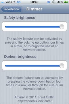 Avete mai provato ad utilizzare il vostro iPhone al buio, magari sdraiati sul letto con l’intenzione di leggere gli ultimi articoli sul blog? Non ci sarebbe da stupirsi se avete perso il sonno, oppure siete stati praticamente bombardati dalla luce dello schermo sebbene la luminosità fosse al minimo. Proprio per questo vi parliamo di Dimmer, un tweak che permette di diminuire la luminosità sotto al limite imposto da Apple.
