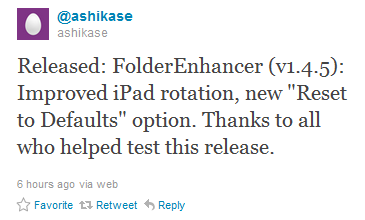 Con l’ultima revisione è stato introdotto un pulsante che permette di ripristinare lo stato di icone e folders prima dell’installazione del tweak (“Reset to Default“) ed è stato migliorato il sistema di rotazione sull’iPad.