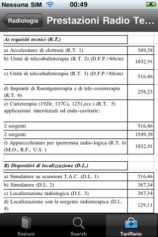 - Tariffario Medico diviso in sezioni: