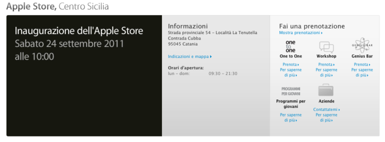 Come tutti ci aspettavamo, sul sito di Apple sono finalmente apparse le informazioni riguardanti l’attesissimo store di Catania, il più a sud d’Italia.