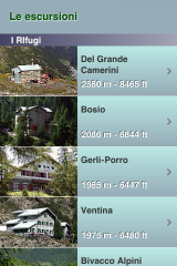 La categoria Lista Panoramiche è la parte che più colpisce di questa app. Contiene decine e decine di fotografie panoramiche a 360° di numerosi luoghi simbolo della Valmalenco: valli, sentieri, boschi, fiumi e baite. Ce n’è per tutti i gusti. Inoltre, grazie a comode indicazioni visive, possiamo “muoverci” all’interno della fotografia e spostarci da una località all’altra con un semplice tocco sullo schermo.