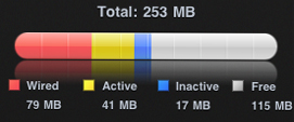 Anche se l’uso della RAM in iOS 4.3.5 è senz’altro migliore, rispetto a quello di iOS 5, il risultato è comunque soddisfacente. Non si è invece riusciti a dare una spiegazione, a quel megabyte in più nel valore “Total“, che corrisponde alla capacità della memoria ad accesso casuale.