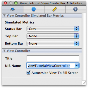 Selezioniamo la vista della nostra applcazione, e apriamo l’Attribute Inspector. Nel campo “NIB Name” eliminiamo la voce “viewTutorialViewController” (semplicemente cancellando il testo), ovvero il file che abbiamo cancellato in precedenza.