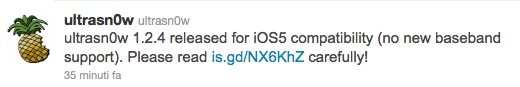 Ultrasn0w 1.2.4 è ora disponibile attraverso la repository ufficiale del DevTeam su Cydia e questa nuova versione non aggiunge il supporto alle nuove baseband ma rende soltanto compatibile lo sblocco di quelle vecchie, con la nuova versione del software rilasciato il 12 Ottobre da Apple.