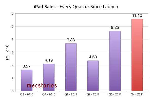 Sempre nello stesso periodo, la società aveva registrato il record di fatturato con 28,57 miliardi dollari, derivanti dalle vendite di 9,25 milioni iPads, 20,34 milioni di iPhone e 3,95 milioni di Mac. Nello trimestre dell’anno scorso, Apple ha realizzato un fatturato di 20,34 miliardi dollari e un utile netto trimestrale di 4,31 miliardi dollari. Il 4° trimestre del 2010 aveva visto invece la vendita di 3,89 milioni Mac, 14.1 milioni di iPhone e 4.19 milioni di iPad.