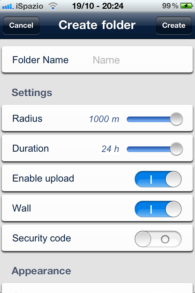 Una delle caratteristiche principali dell’app è proprio la “temporary”, la possibilità di condividere contenuti limitati nel tempo, scaricandoli direttamente e liberamente dalla cartella. Condizione fondamentale è che ci si trovi all’interno del raggio d’azione precedentemente impostato: da un minimo di 100 metri ad un massimo di 1.000 metri. I contenuti scaricati saranno salvati in MyFiles e rimarranno disponibili anche quando la cartella sarà scaduta o nel caso in cui ci si allontani dal cerchio di prossimità.