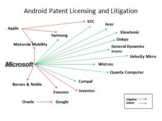 Ben dieci società produttrici di smartphone e tablet con sistema operativo Android, preferiscono pagare royalties alla società di Redmond piuttosto che inciampare in pericolose battaglie legali sui brevetti. A Microsoft, che ha appena visto il lancio degli smartphone Nokia con il proprio sistema operativo, non resta che ringraziare la società rivale Google.