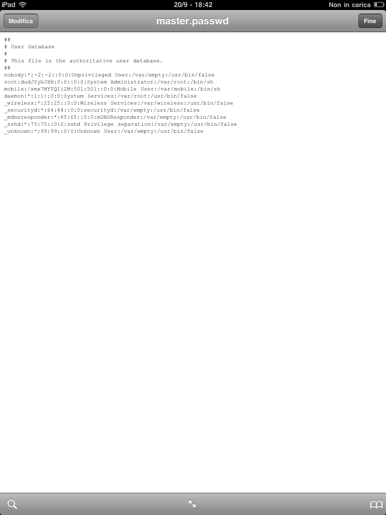 Essendo un sistema iOS basato su Unix, così come il Mac, prevede l’utilizzo di user per effettuare le varie operazioni.