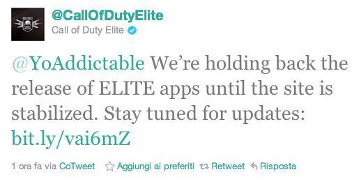 Come vi avevamo già segnalato a settembre, durante il Call of Duty XP di Los Angeles, la nota software house aveva anche annunciato un’app per iOS e Android di ELITE ma sembrano esserci problemi all’orizzonte per il rilascio di quest’app, e la risposta arriva direttamente dal canale ufficiale Twitter di Call of Duty Elite: Activision sta ritardando di proposito il rilascio delle app per i telefoni cellulari per stabilizzare il sito e quindi procedere con la pubblicazione su App Store e simili.