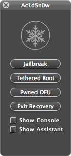 Il PwnDevTeam ha appena rilasciato la prima Beta di Ac1dSn0w per Mac OS X Lion, che dovrebbe girare senza problemi anche su Snow Leopard. Ac1dSn0w consente di effettuare il tethered jailbreak sul nostro iDevice. Fornisce inoltre funzionalità come Boot Tethered, DFU e Exit Recovery.