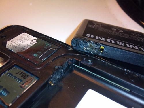 Un membro di XDA-Developer ha raccontato l’accaduto in maniera dettagliata. Il ragazzo a cui è successo il fatto ha udito prima un suono per poi avere una sensazione di trafittura all’anca destra, precisamente in prossimità della tasca dove teneva il telefono. Togliendo il telefono dalla tasca, ha notato che il suo Galaxy S II emetteva fumo. I danni al telefono non sono davvero trascurabili, ma per fortuna non ci sono stati danni fisici alla persona.