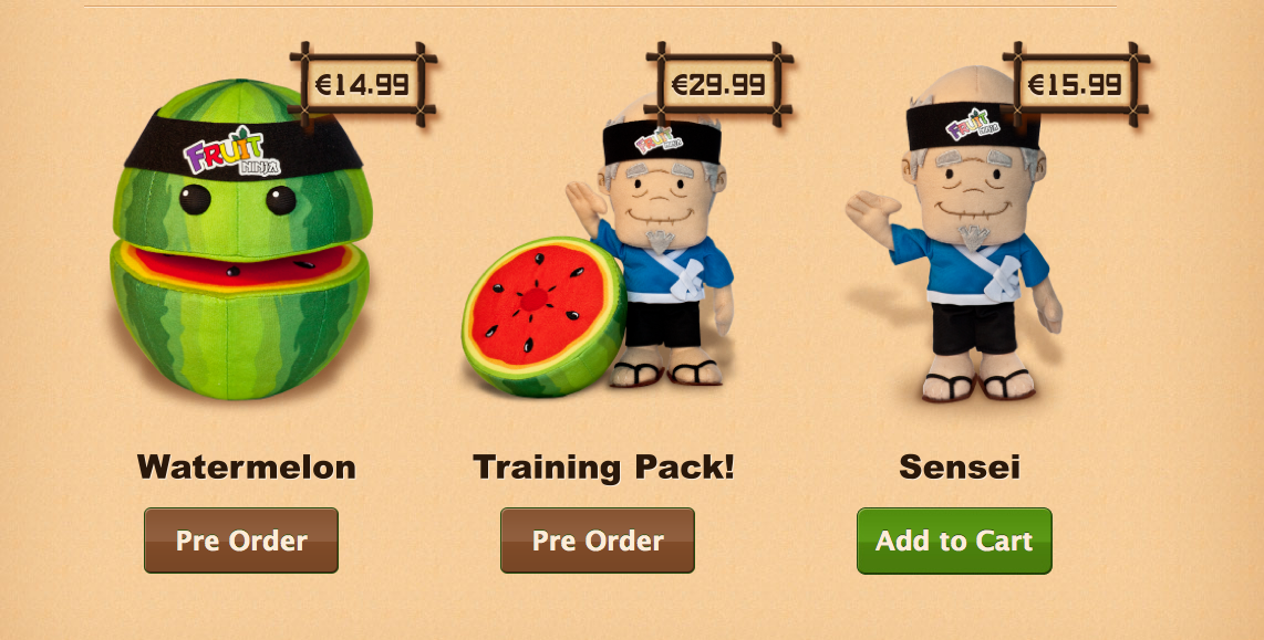 Sullo shop ufficiale Halfbrick è possibile acquistare e/o preordinare i peluches ispirati ad uno dei giochi più famosi per piattaforma iOS, ovvero Fruit Ninja.