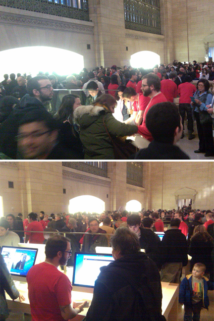 AGGIORNAMENTO X3: La nostra amica “oltreoceano” Laura ci ha inviato delle foto dell’apertura dell’Apple Store a Grand Central e le ha comodamente riunite per non riempire l’articolo.