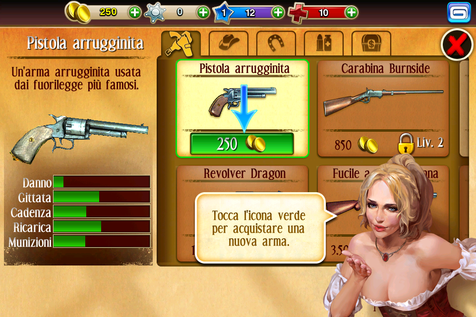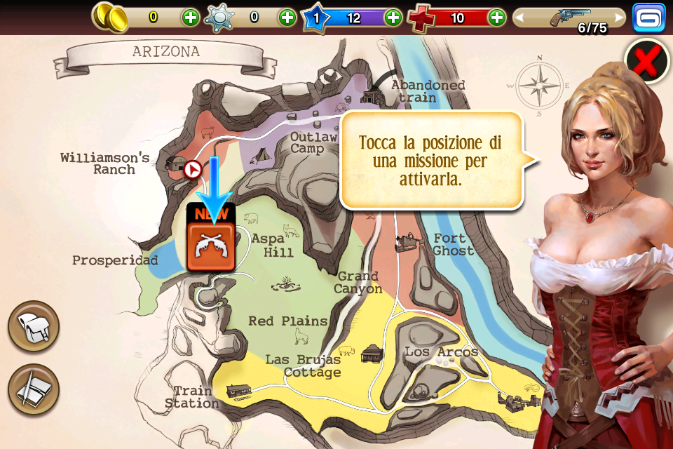 Six-guns è un gioco davvero bello ed avvincente ambientato nel far west. I progressi del personaggio sono graduali, per ogni missione che si supera verranno sbloccati diversi oggetti. Oltre a ciò, vi è la disponibilità di acquistare diverse armi, vestiti e vari item direttamente dal negozio.