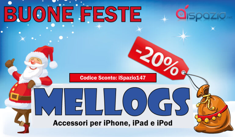 L’aria Natalizia si fa sentire e le festività sono alle porte. Proprio per questo, anche oggi, vi proponiamo uno sconto di cui potrete usufruire per i vostri acquisti o regali di Natale. Da oggi, nello store Mellogs, tanti accessori per iDevices saranno a prezzi ridotti del 20% in esclusiva per gli utenti iSpazio. Di seguito ecco i dettagli.