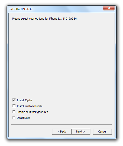 - Redsn0w 0.9.9 b9 (Mac, Windows);