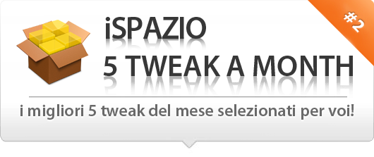 Eccoci arrivati al secondo appuntamento di 5TWEAKAMONTH, la rubrica di iSpazio in cui vi reporteremo i cinque migliori tweak del Cydia Store. Tutti questi ultimi saranno recensiti con screen, funzioni principali, le repo dove scaricarle e con la nostra riflessione personale che vi porgeremo dopo averli provati.