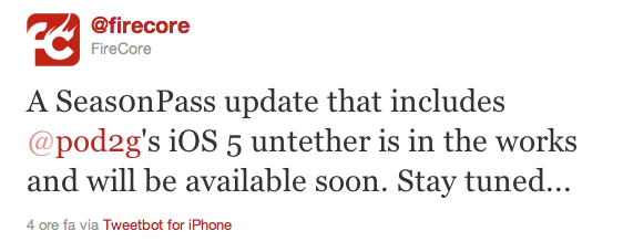 FireCore conferma tramite Twitter che stanno lavorando all’aggiornamento di Seas0nPass.