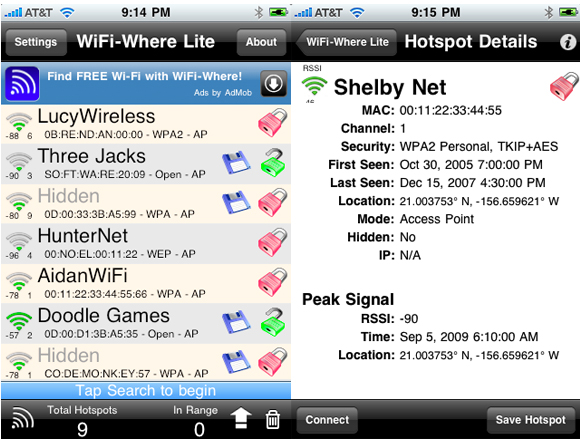 Esistono due versioni dell’applicazione: la differenza tra lite e a pagamento sta soltanto nella presenza dei banner pubblicitari e l’assenza della distanza della rete ricercata. L’applicazione permette di avere una rilevazione migliore rispetto l’app nativa, basata sulla geolocalizzazione, posizione GSM/GPS e attraverso la ricerca del segnale wireless.