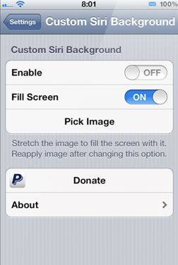 Potete trovare Custom Siri Background gratuitamente su Cydia tramite la repository di ModMyi, ed è compatibile con iPhone 4S.