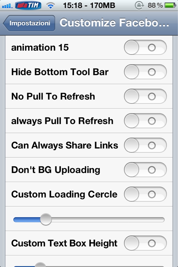 Dopo aver installato il tweak da Cydia non troveremo nessuna icona sulla Springboard, ma visualizzeremo semplicemente una nuova sezione nelle impostazioni, dove avremo accesso ad alcuni parametri creati appositamente per modificare le caratteristiche dell’app Facebook.