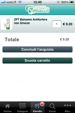 Tutto ciò che decidiamo di acquistare va a finire nel tab Carrello dove potremo decidere se concludere l’acquisto o eliminare eventuali elementi non più desiderati. Attraverso il tab di Ricerca potremo cercare all’interno del database, farmaci ed accessori sanitari. Chiaramente per poter completare gli acquisti è necessario essere registrati fornendo degli opportuni metodi di pagamento. La spedizione viene effettuata in tutta Italia e con corriere espresso.