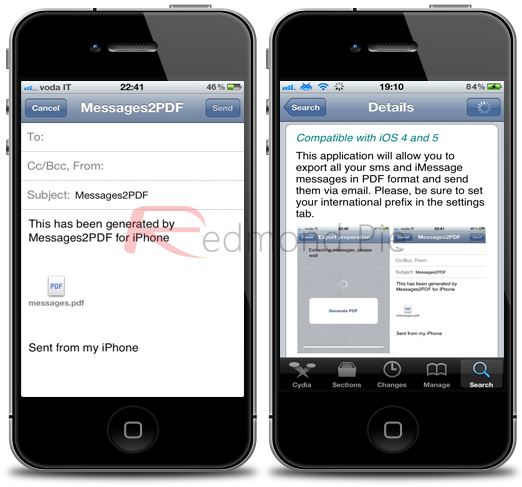Messages2PDF è compatibile con iOS 4 e 5 e ovviamente richiede un iPhone jailbroken. Il tweak è disponibile nella repository di BigBoss al prezzo di $1,49 ed è stata sviluppata da Alberto De Luca.