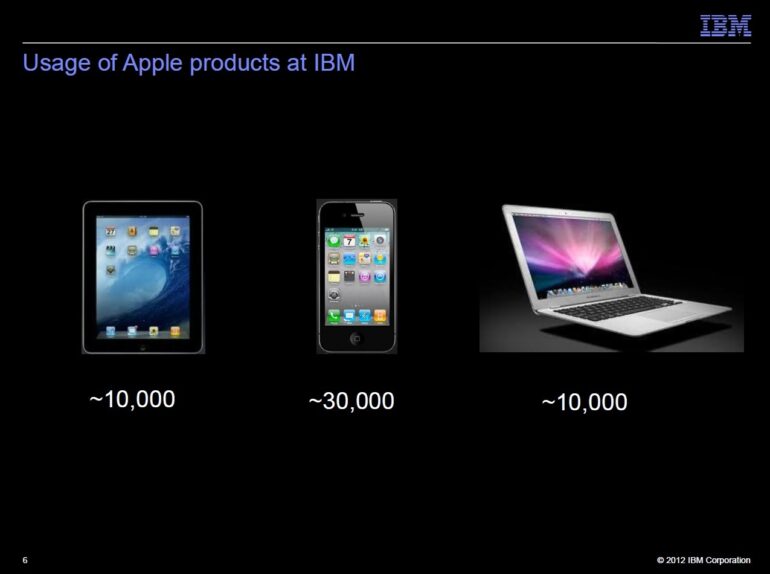 IBM ha 30.000 dipendenti che utilizzano iPhone, 10.000 armati di iPad e infine altri 10.000 lavoratori che utilizzano MacBook di ogni genere. Quindi, con un totale di 50mila dispositivi, tra Mac, iPhone e iPad, la società con sede ad Armonk (USA), si classifica come l’azienda con più prodotti Apple distribuiti tra i propri dipendenti.