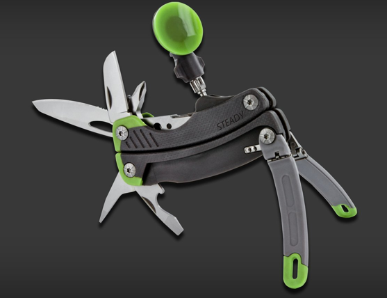 Steady Tool è un comodo coltellino con tutte le caratteristiche del caso come lama sottile, lama seghettata, cacciaviti, apribottiglie, pinze e tronchesi.