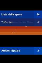 A questo punto, vediamo come muoverci nell’applicazione utilizzando la gesture “pizzico verso il centro”, alla quale siamo abituati usando Safari o per zoomare le immagini su iOS. Quando ci troviamo in una sezione, che sia una lista di voci oppure nella schermata principale, potremo passare al livello superiore eseguendo un pizzico verso il centro dello schermo. Se ci troviamo in una lista, verremo portati alla schermata di selezione delle liste. Se ci troviamo nella schermata di selezione, compariranno le impostazioni. Per passare alla schermata superiore potremo tuttavia usare anche il trascinamento verso l’alto, mentre per passare alla schermata inferiore potremo trascinare lo schermo verso il basso. Le gestures in Clear sono fondamentali, perché permettono di muoversi in modo rapidissimo attraverso le funzioni dell’app.
