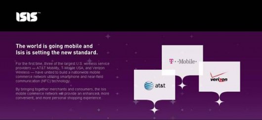 ISIS, è questo il nome della partnership tra Verizon Wireless, AT & T e T-Mobile, per quanto riguarda i pagamenti da rete mobile. Il servizio sarà disponibile a metà 2012 con sedi in tutta Salt Lake City, Utah e Austin, Texas. Chase, Capital One e Barclaycard hanno stipulato accordi per offrire carte di credito, di debito e prepagate, parallelamente al servizio.