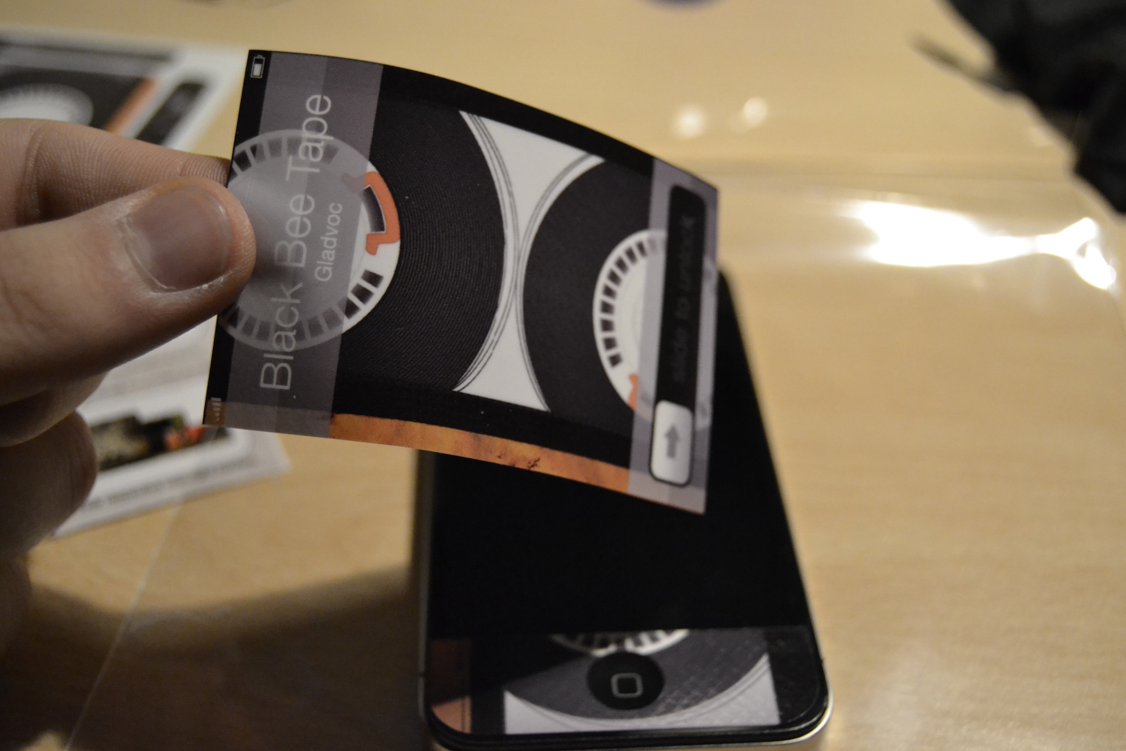 Abbiamo deciso di applicare su di un iPhone 4 nero la skin Black Bee Tape, che raffigura i nastri di una musicasetta. Gli adesivi, per loro natura, risultano compatibili con eventuali pellicole già applicate al proprio device: basta semplicemente posizionarli al di sopra della pellicola. Anche la presenza di altri tipi di accessori, come le custodie, non costituisce un particolare impedimento. Per le cover, discorso a parte: abbiamo provato con una Snap Case InCase e si è rivelata abbastanza stretta da andare a smuovere le sottili strisce adesive sui lati del dispositivo.